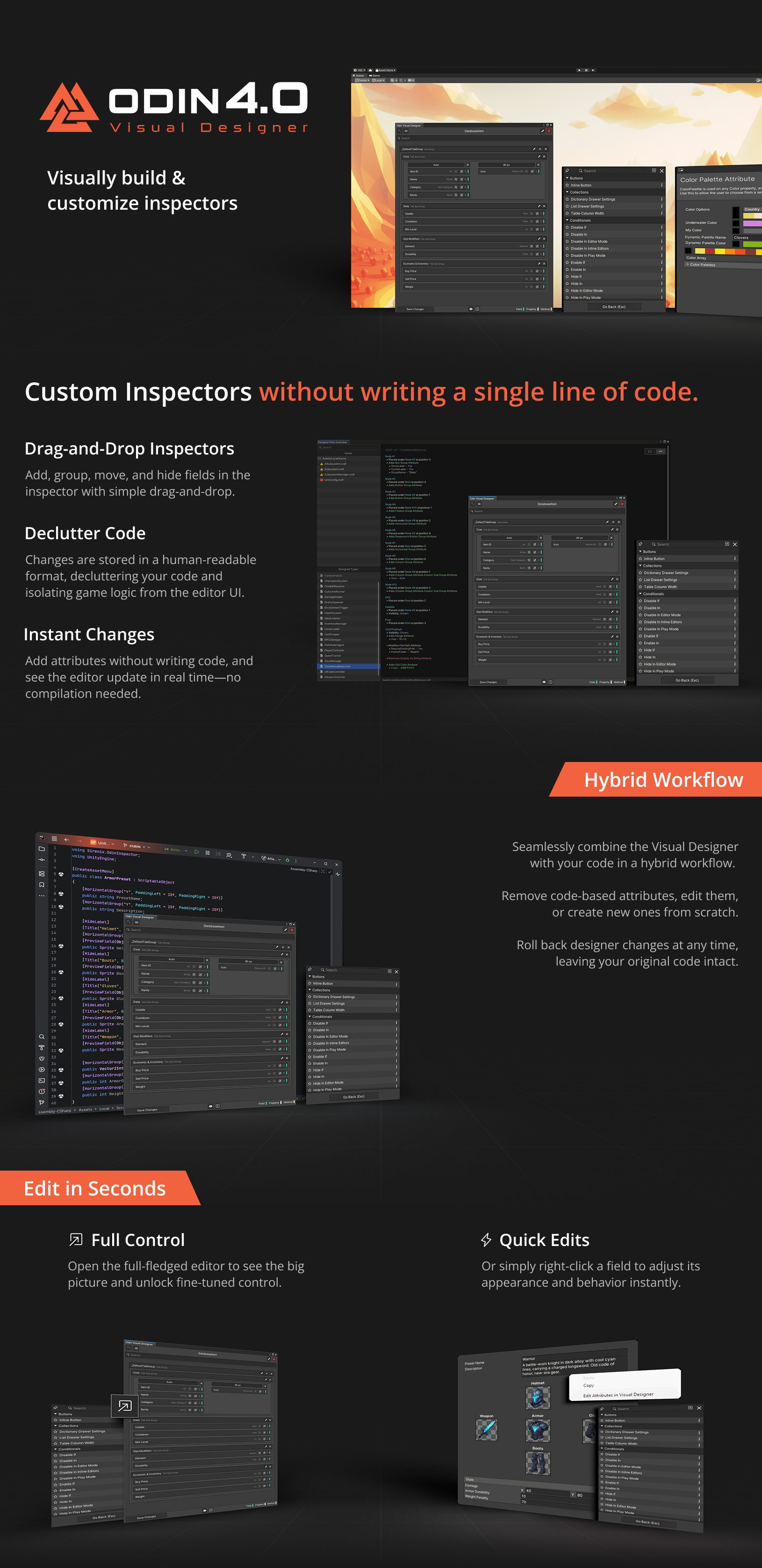 We hope we’ve succeeded in creating a tool that helps you customize your inspectors even faster than you’re already used to with Odin, and we’re excited to finally put the power of Odin into the hands of non-coders as well.
